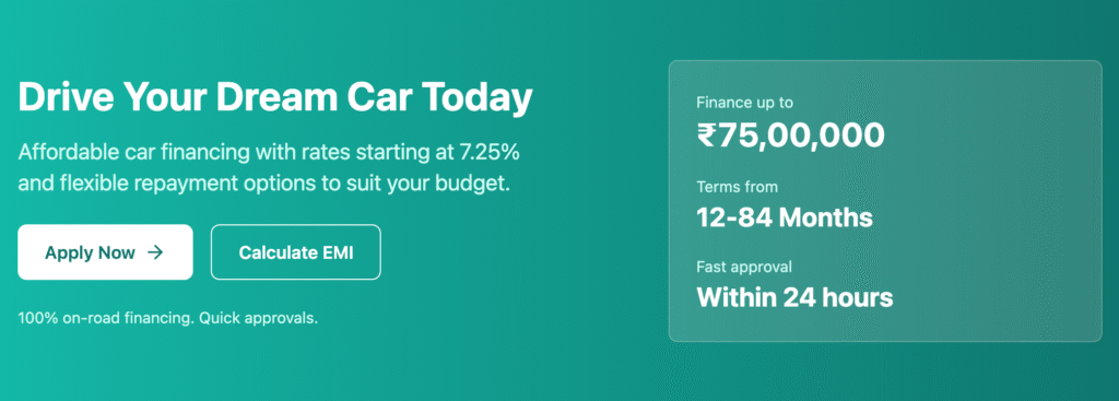 5. Loan-to-Value (LTV): Generally, lenders finance up to 80–100% of the car’s on-road price