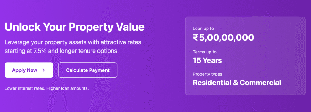 Loan secured against offices, shops, or commercial complexes.
